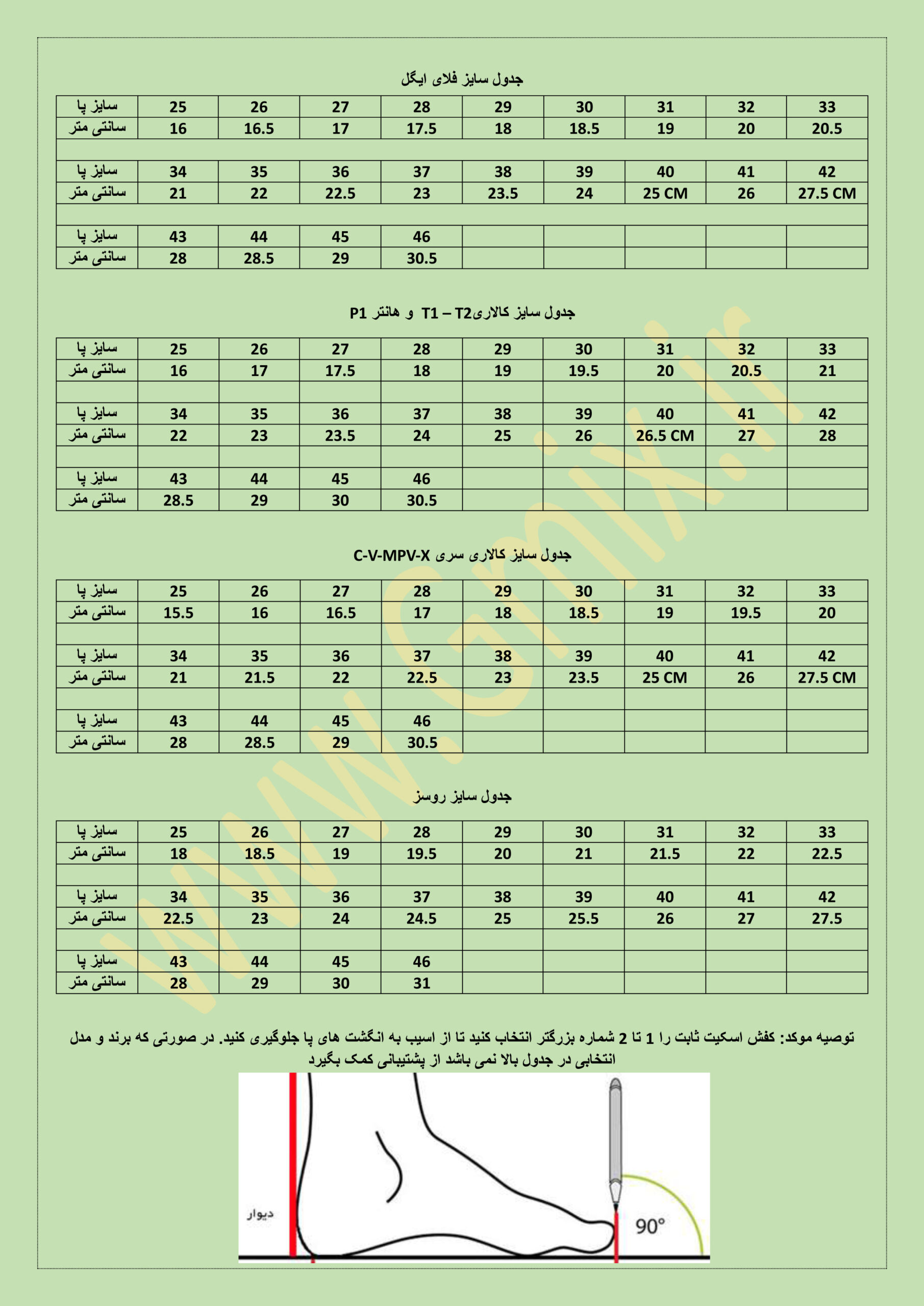 راهنمای اختصاصی خرید جدول سایز کفش اسکیت فلای ایگل روسز و کالاری