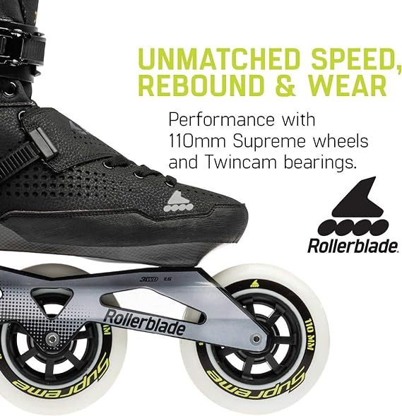 - چرخهای این اسکیت از نوع ROLLERBLADE SUPREME 110mm/85A هستند و غلتش، چسبندگی، سرعت و سایش را به حداکثر میرسانند.