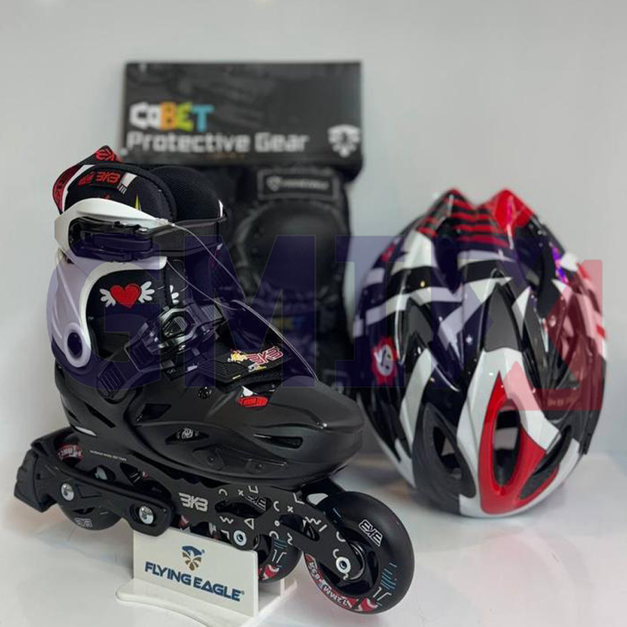 کفش اسکیت متغیر بچگانه فلایینگ ایگل S6 pro مشکی + لوازم