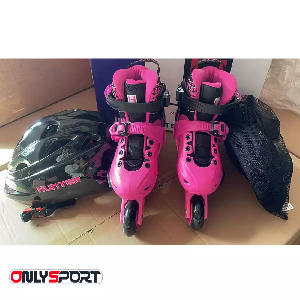 کفش اسکیت بچگانه متغیر هانتر Hunter | یکی دیگر از برند های کفش اسکیت بعد از برند های معروف اسکیت هانتر ، متغییربوده به دلیل اینکه این مدل قابلیت تغییر سایز پا را دارد و به شما کمک میکند که در سال های بعد از خرید اسکیت از آن به راحتی استفاده کنید و وزن این مدل اسکیت بسیار مناسب بوده و به شما کمک میکند که در هنگام تمرین یا حرکت ای ورزشی دچار خستگی نشوید.بست های چف پا در این مدل کفش اسکیت به صورت تسمه ای بوده که با آج های که روی تسمه کفش دارد کاملا پا ها را چفت کفش میکند که از پیچ خوردگی ودر رفتگی پاها جلوگیری میکند تراک ها و چرخ ها این مدل از جنس پلاستیک فشرده بسیار مقاوم ومحکم بوده در این مدل از abec5 استفاده شده تا سرعت بهتری در هنگام اسکیت سواری داشته باشید،این برند یکی از برندهای معروف چینی هست که در رنگ های مختلف و به همراه ست ایمنی که شامل زانوبند،آرنج بند،کف یند و کلاه میباشد که ست های ایمنی دقیقا متناسب با سایز کفش اسکیت بوده که در یک پکیج کامل توزیع میشود