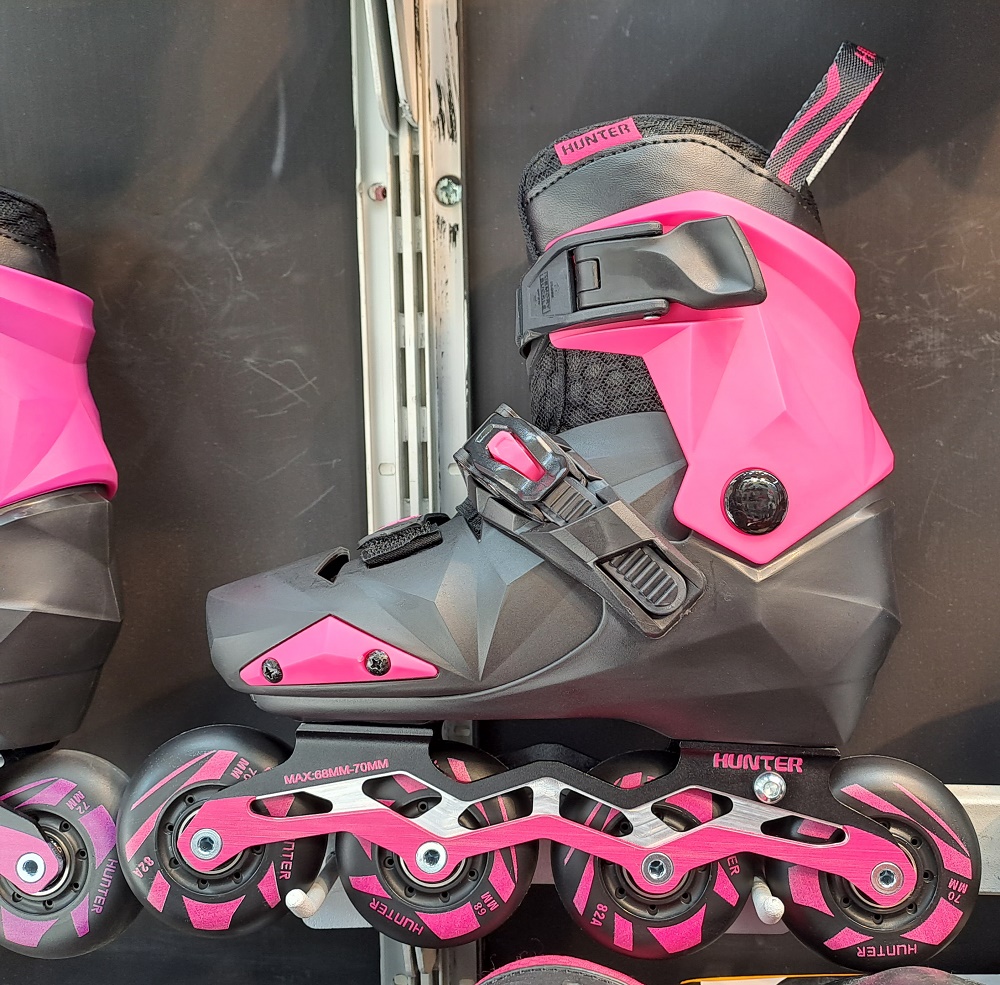کفش اسکیت بچگانه متغیر هانتر Hunter | یکی دیگر از برند های کفش اسکیت بعد از برند های معروف اسکیت هانتر ، متغییربوده به دلیل اینکه این مدل قابلیت تغییر سایز پا را دارد و به شما کمک میکند که در سال های بعد از خرید اسکیت از آن به راحتی استفاده کنید و وزن این مدل اسکیت بسیار مناسب بوده و به شما کمک میکند که در هنگام تمرین یا حرکت ای ورزشی دچار خستگی نشوید.بست های چف پا در این مدل کفش اسکیت به صورت تسمه ای بوده که با آج های که روی تسمه کفش دارد کاملا پا ها را چفت کفش میکند که از پیچ خوردگی ودر رفتگی پاها جلوگیری میکند تراک ها و چرخ ها این مدل از جنس پلاستیک فشرده بسیار مقاوم ومحکم بوده در این مدل از abec5 استفاده شده تا سرعت بهتری در هنگام اسکیت سواری داشته باشید،این برند یکی از برندهای معروف چینی هست که در رنگ های مختلف و به همراه ست ایمنی که شامل زانوبند،آرنج بند،کف یند و کلاه میباشد که ست های ایمنی دقیقا متناسب با سایز کفش اسکیت بوده که در یک پکیج کامل توزیع میشود