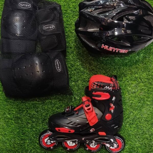 کفش اسکیت بچگانه متغیر هانتر مشکی قرمز Hunter + لوازم