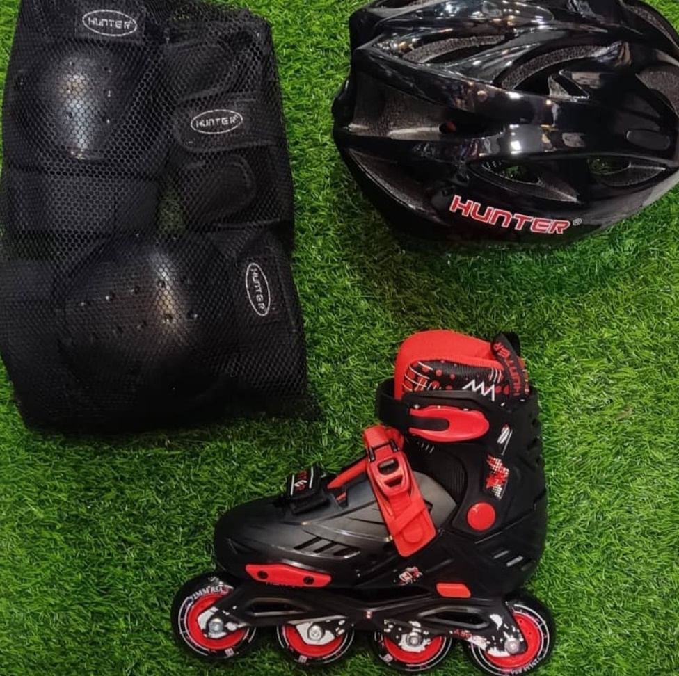 کفش اسکیت بچگانه متغیر هانتر Hunter | یکی دیگر از برند های کفش اسکیت بعد از برند های معروف اسکیت هانتر ، متغییربوده به دلیل اینکه این مدل قابلیت تغییر سایز پا را دارد و به شما کمک میکند که در سال های بعد از خرید اسکیت از آن به راحتی استفاده کنید و وزن این مدل اسکیت بسیار مناسب بوده و به شما کمک میکند که در هنگام تمرین یا حرکت ای ورزشی دچار خستگی نشوید.بست های چف پا در این مدل کفش اسکیت به صورت تسمه ای بوده که با آج های که روی تسمه کفش دارد کاملا پا ها را چفت کفش میکند که از پیچ خوردگی ودر رفتگی پاها جلوگیری میکند تراک ها و چرخ ها این مدل از جنس پلاستیک فشرده بسیار مقاوم ومحکم بوده در این مدل از abec5 استفاده شده تا سرعت بهتری در هنگام اسکیت سواری داشته باشید،این برند یکی از برندهای معروف چینی هست که در رنگ های مختلف و به همراه ست ایمنی که شامل زانوبند،آرنج بند،کف یند و کلاه میباشد که ست های ایمنی دقیقا متناسب با سایز کفش اسکیت بوده که در یک پکیج کامل توزیع میشود