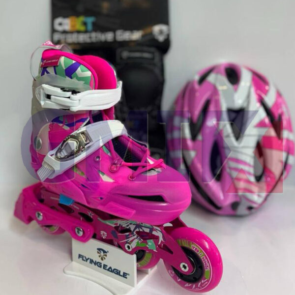 کفش اسکیت فلاینگ ایگل Flying Eagle s6 proصورتی | این مدل از فلایینگ ایگل تا 5 سایز تغییر سایز می دهد و قسمت کاف اسکیت به ادعای کارخانه حاوی رنگدانه های فلورسنت می باشد، که سبب تابشی جزیی در شب می شود. این مدل یکی از پرفروش ترینهای برند فلایینگ ایگل می باشد و از کیفیت چرخها، بوت و بلبرینگ خوبی هم برخوردار است.